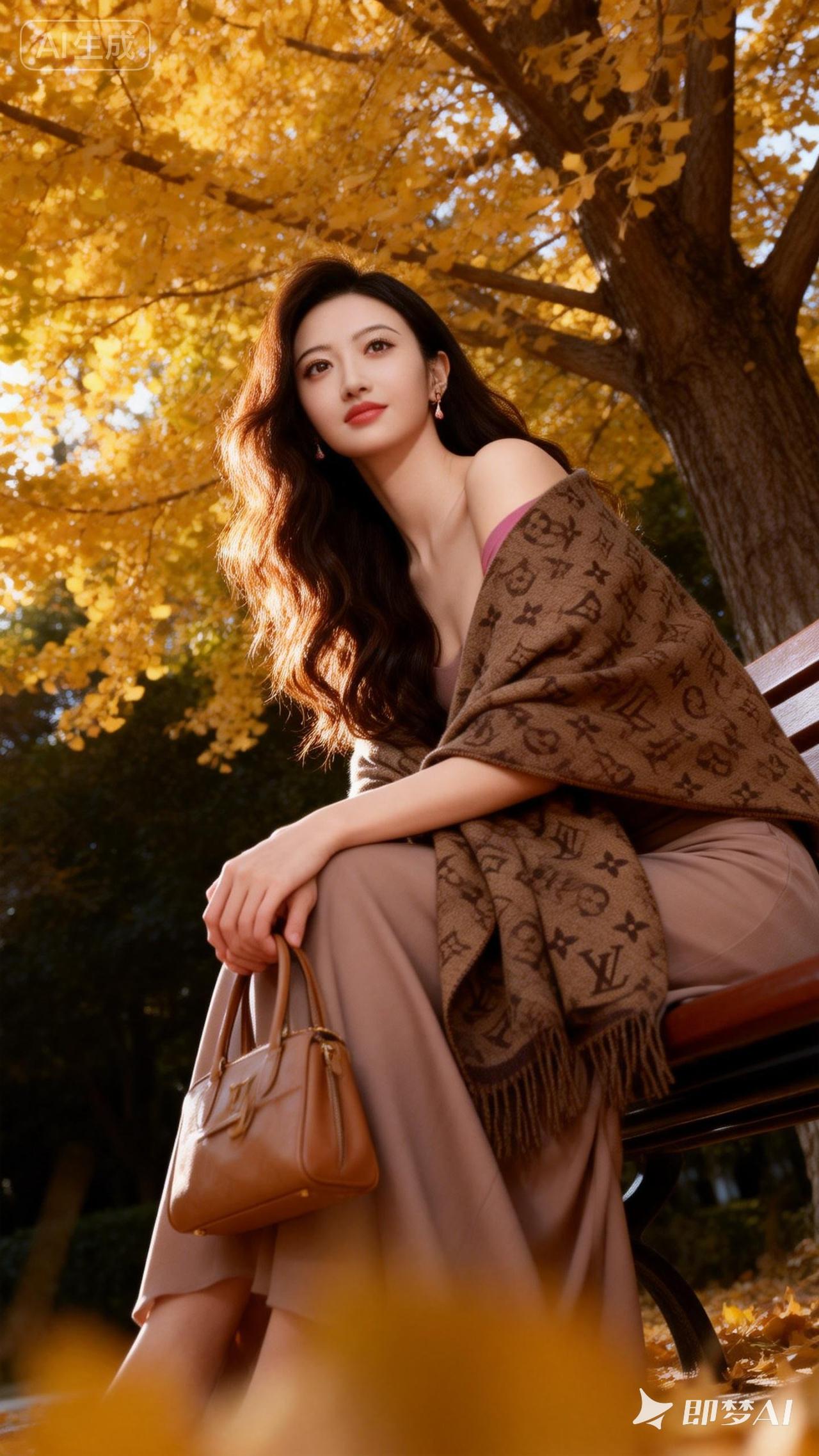 秋日暖阳下,优雅女子倚树而坐,散发着迷人魅力。