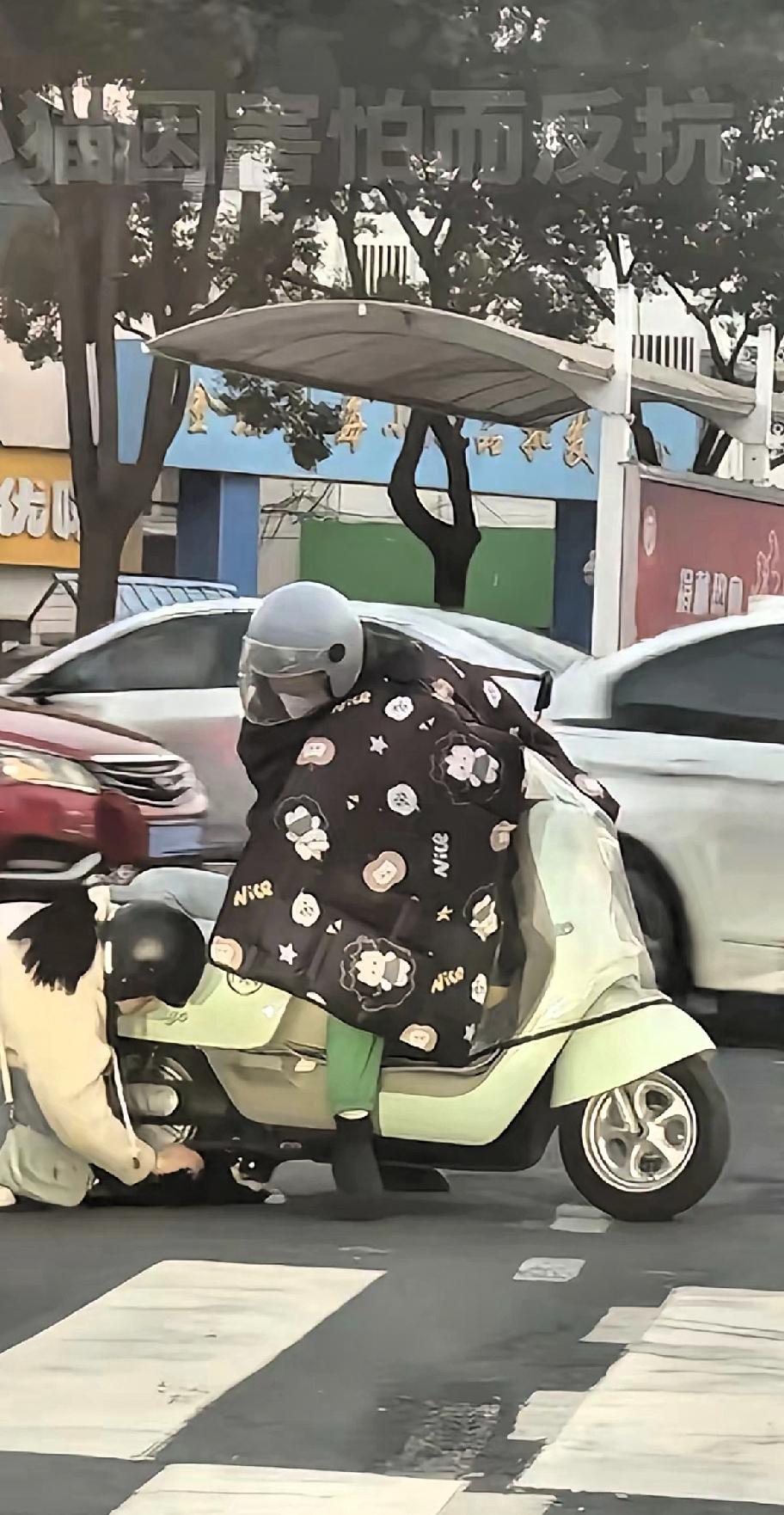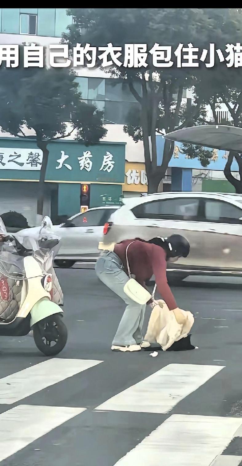 感动!善良是刻在骨子里的! 姑娘你火了! 近日,江苏常州,一只流浪猫一瘸一拐在红绿灯路口爬行,眼看小黑猫就要被一女子电动车碾压到,她也是看到了,就立马停下车想要把猫咪赶走,生怕车轮胎压到它。但是另外一位女子也是骑着电动车,她二话不说就想着把猫咪救出来,害怕被其他车辆压到,可是女子想用手把猫咪抓出来,但是猫咪的警惕性很强,就想要反口咬女子,女子二话不说,脱下外套包住猫咪抱起,一手骑车一手抱着猫猫走了。 本来骑电车就冷,还把厚外套脱了给小猫包着,善良的人是刻在骨子里的,对动物也不例外!为姑娘点赞!好人一定有好报!