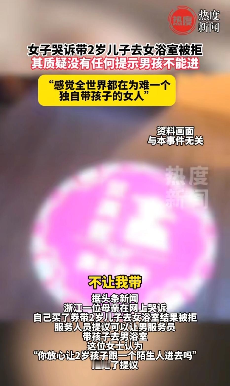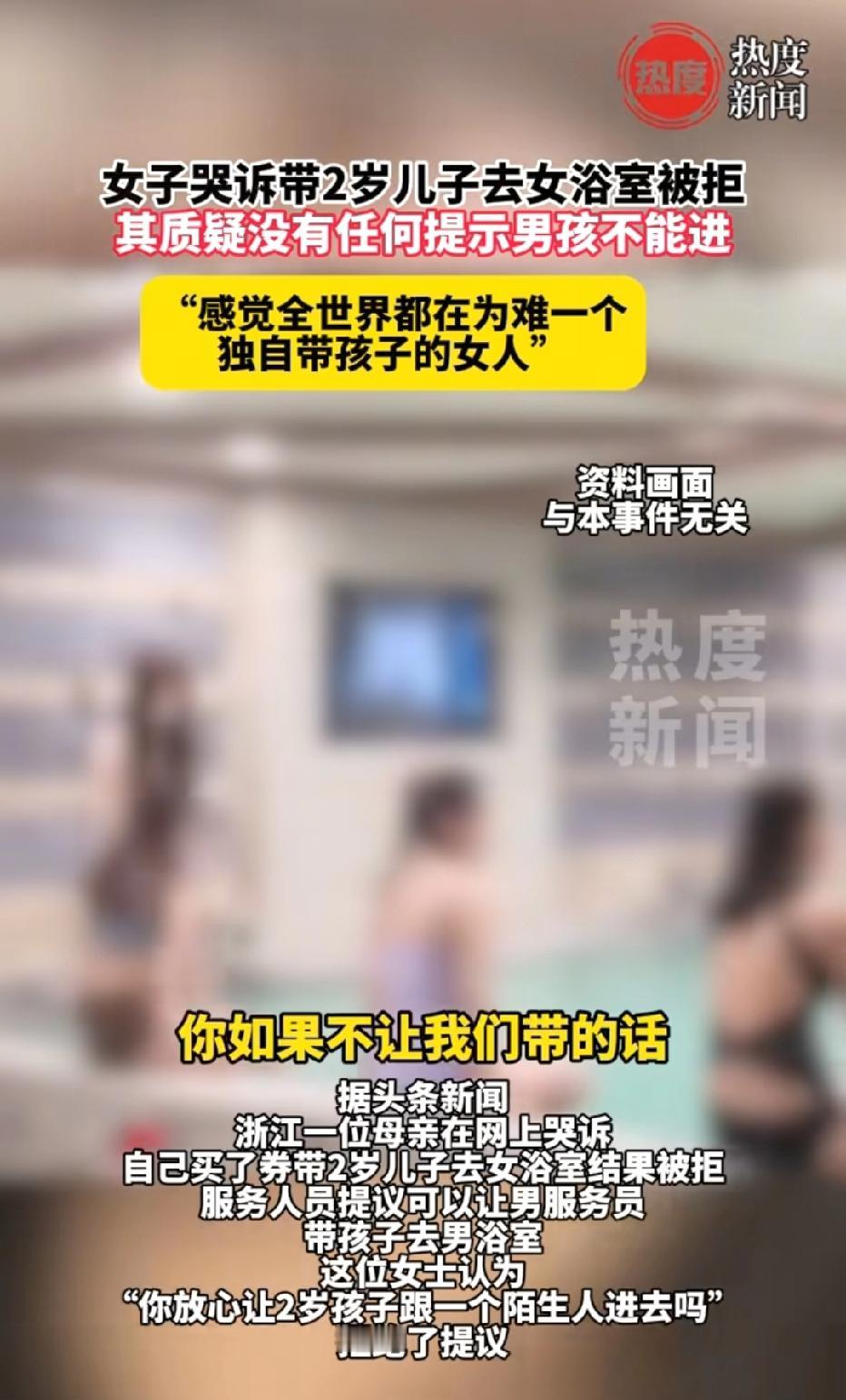 浙江,女子团购一张洗浴券,她带2岁儿子去女浴室洗澡,遭到前台拒绝,理由是男童不能