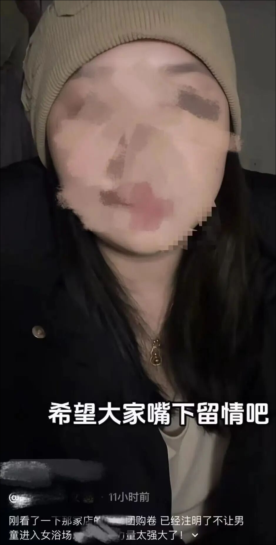 该女子特别提示了下,该商家团购券目前已经注明不让男童进入女浴场。