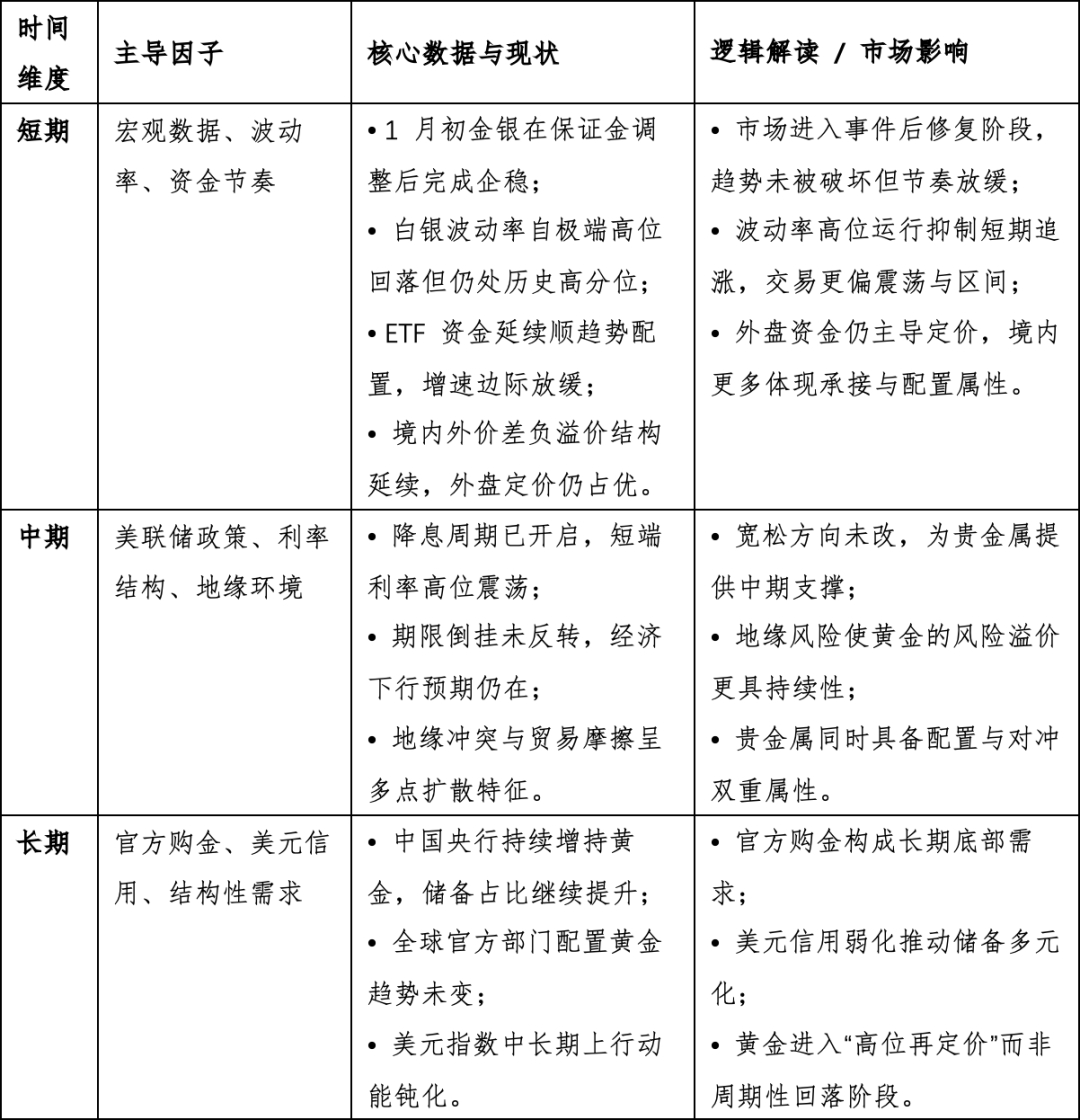 整体来看,短端利率高位稳定、期限倒挂延续的组合,表明中期降息逻辑尚未被破坏。利率环境对贵金属的影响仍偏中性偏多,更多通过限制下行风险而非提供短期加速动能发挥作用。