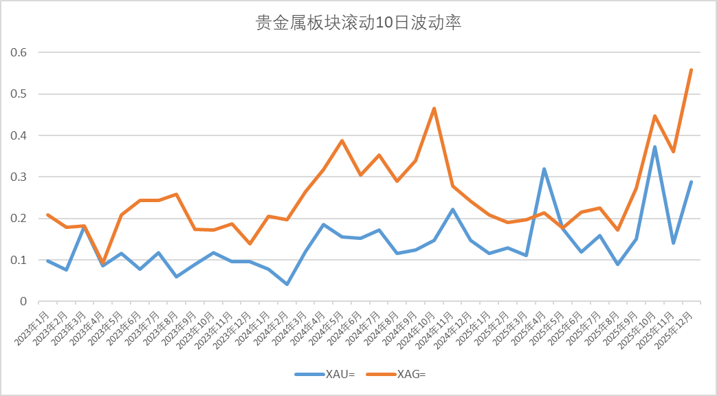贵金属板块已完成12月末的波动释放,进入波动率下行但是趋势企稳延续。