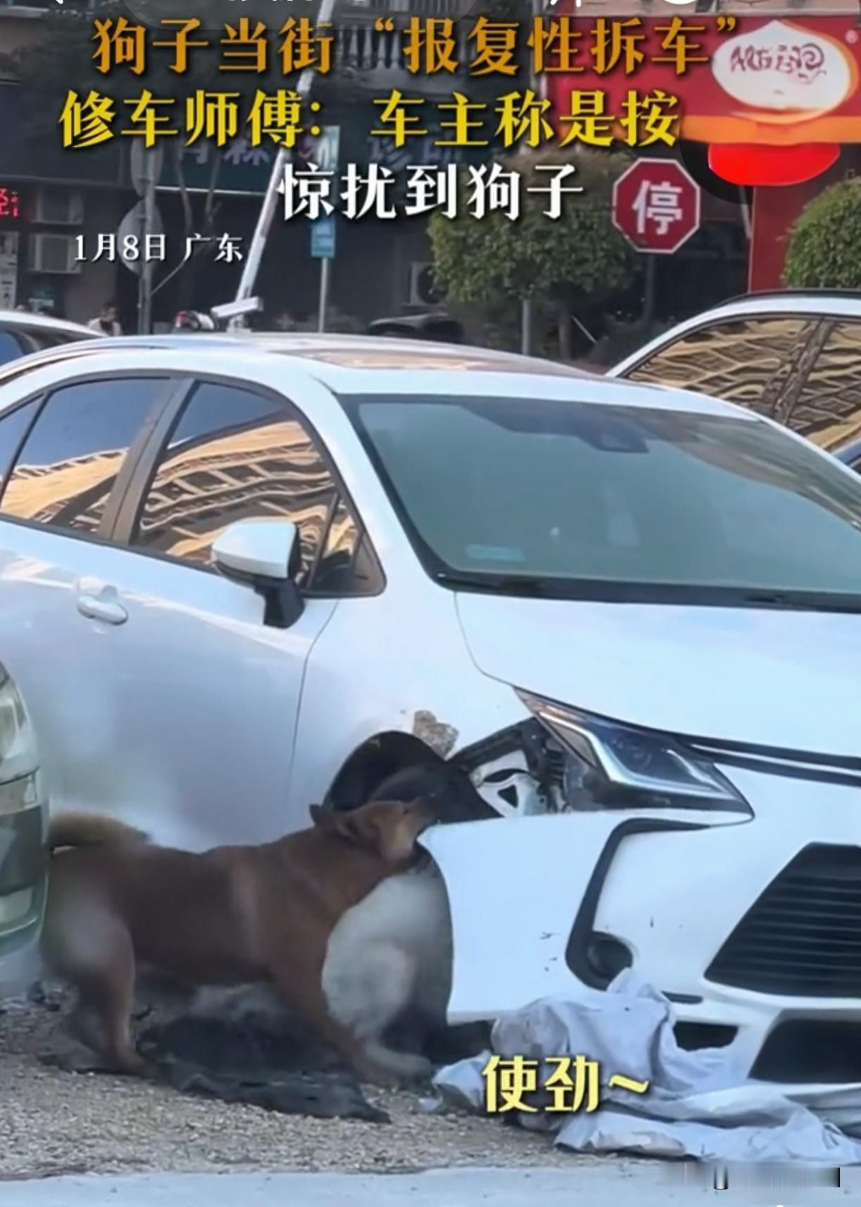 喇叭一按,爱车被狗拆稀烂!2000维修费该谁赔?法律这样说! 你说离谱不离谱?广东一位车主,就因为按喇叭赶了挡路的两只狗,半小时后回来,车都快被拆了!保险杠、线路咬得一塌糊涂,维修费整整2000块!这到底是狗的“报复”,还是车主自找的?今天咱们掰扯清楚! 一、事件还原:不是电影,是真事! 1月8日,惠州一位车主路上碰到两只狗在路中间“腻歪”,他按了几声喇叭驱赶。没想到等办完事回来,眼前一幕让他傻眼——那两只狗正疯狂撕咬他的爱车!黄狗啃车头,白狗扯护板,塑料碎片掉一地。定损一看,前保险杠、线束、雨刮水管全损,维修整整2000元。连保险公司接报案时都懵:“你确定是狗咬的?” 二、不只一例!全国多地车主中招 这还真不是偶然。青岛有车主鸣笛惊扰狗狗后,保险杠被扒烂,修了2300元还得买狗粮“赔罪”;银川一位车主新车被流浪狗啃坏线路,维修费8000元,安全隐患还留了一堆。看来,“鸣笛惹狗,车遭殃”已成了隐形风险。 三、科学真相:狗不是报复,是吓坏了! 别以为狗真会“记仇”。动物行为专家说了:狗狗对突然的巨响极度敏感,连续鸣笛会让它们误判遭遇攻击。车停在原地,就成了它们恐惧本能下的“发泄目标”。这不是报复,是应激反应——时间巧合+本能防御罢了。 四、法律干货:车被狗咬了,这么赔! 记住这几条,不吃亏: 1. 有主人的狗:没牵绳出事的,主人全责赔(《民法典》第1245条)。 2. 流浪狗:道路或小区管理方未尽责防范的,他们得赔。 3. 车损险:投保的车主,48小时内报案留证据,一般可理赔。 但注意!如果车主有连续鸣笛等过激行为,可能被认定“重大过失”,责任就得自己扛一部分。 五、争议背后:人和狗的边界在哪? 网友吵翻了天: · 支持车主的:“路又不是宠物乐园,不鸣笛难道等着撞上?” · 心疼狗狗的:“鸣笛就是噪音攻击,绕一下不行吗?狗也是生命!” 说到底,矛盾直指两件事:养犬不牵绳的漏洞,和行车遇到动物时如何理性应对。城市生活里,人和动物的安全界限,到底该怎么划? 你以为狗咬的是车,其实咬的是现代生活的脆弱规则——当匆忙遇上本能,当效率碰上温情,我们总习惯选最直接的方式,却常忽略其他生命的恐惧。下次遇到拦路的小动物,你会选择鸣笛,还是绕行?如果你的车被狗咬了,你知道该怎么维权吗?评论区聊聊你的看法,点赞转发,让更多人学会理性应对!车辆受损维权 车被砸赔偿