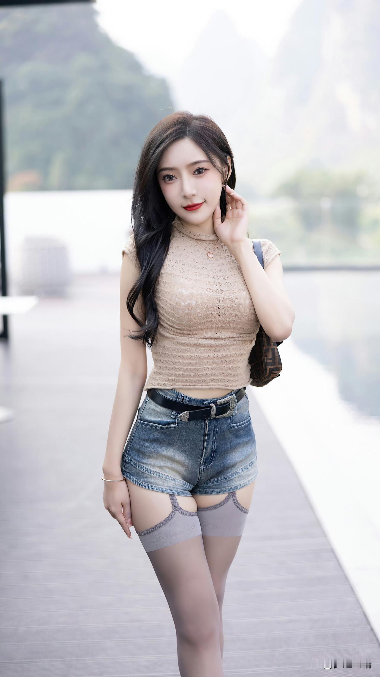 山水间,美人立,笑语盈盈。