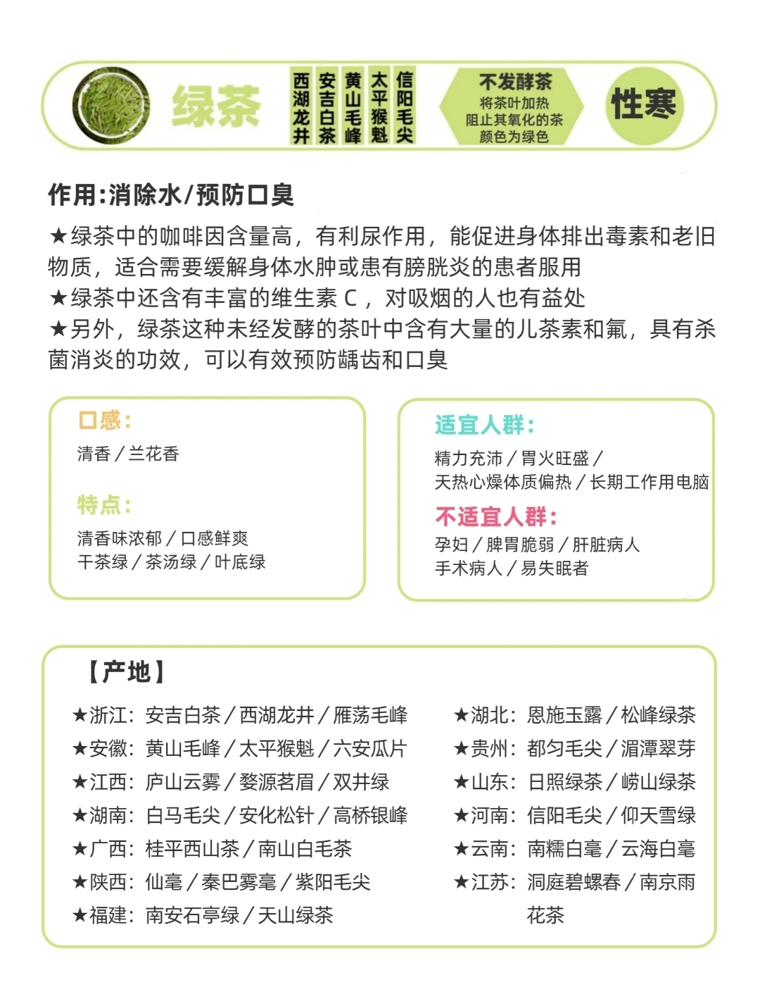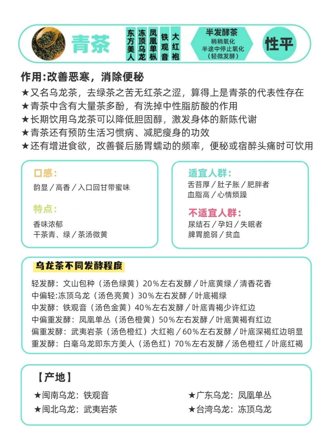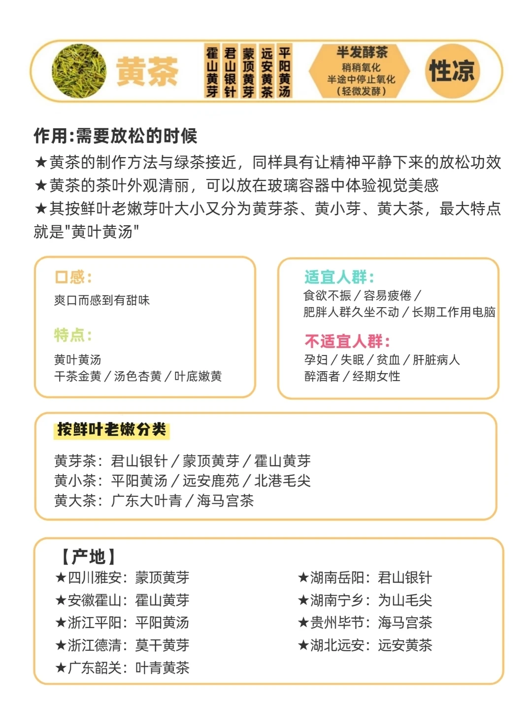 中国茶文化博大精深,茶类繁多却并非无迹可寻。按照发酵程度和制作工艺,主流茶系可分为七大类,掌握它们的核心特点,就能轻松找到适合自己的那一款。 1. 绿茶:不发酵的“鲜爽代表” - 代表品类:西湖龙井、碧螺春、黄山毛峰 - 冲泡要点:水温控制在80-85℃,过高水温会破坏茶氨酸,导致茶汤发涩。 - 核心特点:口感鲜爽甘甜,富含茶多酚。夏日冷泡解暑,熬夜时饮用能快速提神,是办公族的常备茶。 2. 白茶:微发酵的“时光宝藏” - 代表品类:白毫银针、寿眉、老白茶 - 冲泡要点:新白茶用90-100℃热水冲泡,老白茶可直接煮饮,滋味更醇厚。 - 核心特点:有“一年茶,三年药”的说法,煮后茶汤温润,秋冬饮用能暖身润燥,尤其适合体质偏寒的人。 3. 黄茶:轻发酵的“小众柔和款” - 代表品类:君山银针、蒙顶黄芽 - 冲泡要点:与绿茶类似,水温80-85℃即可,避免高温影响香气。 - 核心特点:因独特的“闷黄”工艺,茶汤比绿茶更柔和,入口无涩 4. 青茶(乌龙茶):半发酵的“香气王者” - 代表品类:铁观音、大红袍、凤凰单丛 - 冲泡要点:需用95-100℃沸水,才能充分激发其浓郁香气。 - 核心特点:香气层次丰富,是奶茶店“鸭屎香奶茶”的同款茶底。茶多酚含量适中,适合追求口感层次,且有轻减脂需求的人群。 5. 红茶:全发酵的“温润搭档” - 代表品类:英德红茶、正山小种、祁门红茶、金骏眉 - 冲泡要点:水温90-95℃,既能保留茶香,又不会让茶汤过浓。 - 核心特点:全发酵工艺使其茶汤温润,无刺激性,能暖胃。加入牛奶或蜂蜜,就能自制一杯无添加的奶茶,口感丝滑不腻。 6. 黑茶:后发酵的“越陈越香款” - 代表品类:普洱茶、安化黑茶 - 冲泡要点:必须用100℃沸水,紧压型黑茶(如茶饼)需先“醒茶”(用热水快速冲洗1-2次),释放茶味。 - 核心特点:属于后发酵茶,存放时间越长,滋味越醇厚。 7. 花茶:再加工茶的“风味混搭” - 代表品类:茉莉花茶(绿茶底)、玫瑰普洱(普洱底)、桂花龙井(龙井底) - 冲泡要点:水温按茶底调整,如绿茶底用80℃,普洱底用100℃,避免破坏花香和茶底本味。 - 核心特点:以基础茶为底,搭配鲜花窨制而成,既有茶香又有花香。 看完这七大茶系,你是否对选茶有了清晰方向?