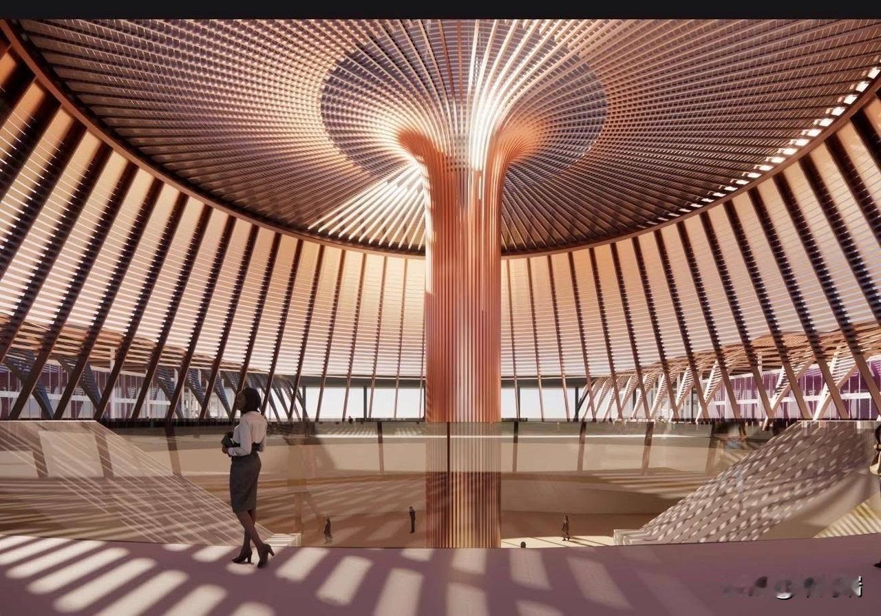 埃塞俄比亚新机场的官方设计效果图,该机场将成为非洲最大的机场。 由达尔(DAR)和扎哈·哈迪德建筑事务所(ZHA)牵头的联合体赢得了新机场的设计竞赛,并将联手为业主提供设计咨询服务。