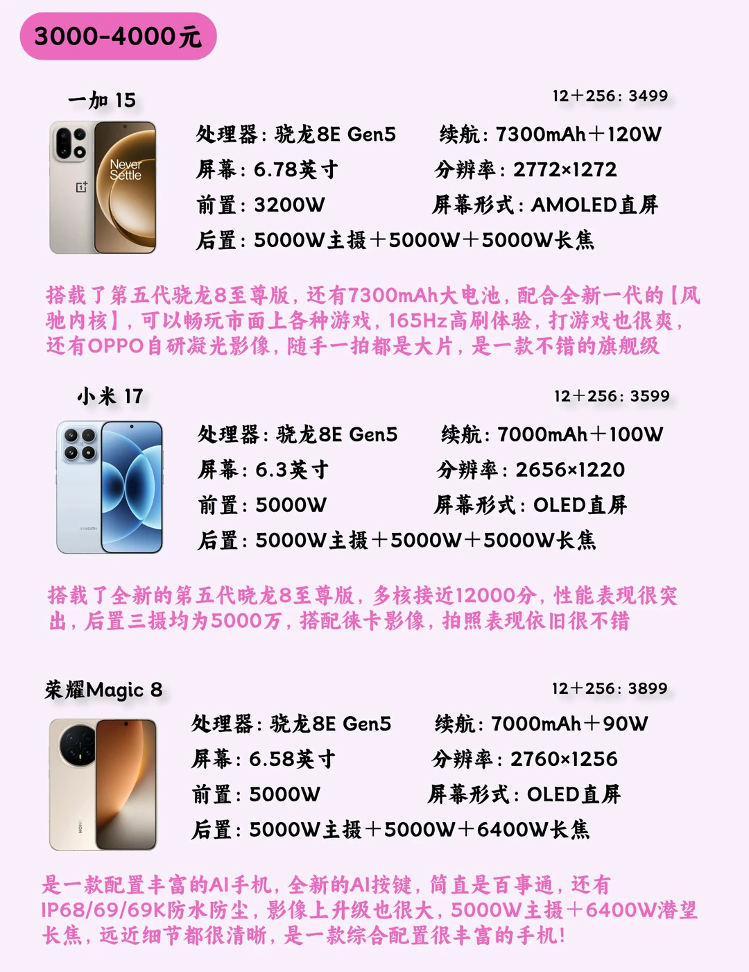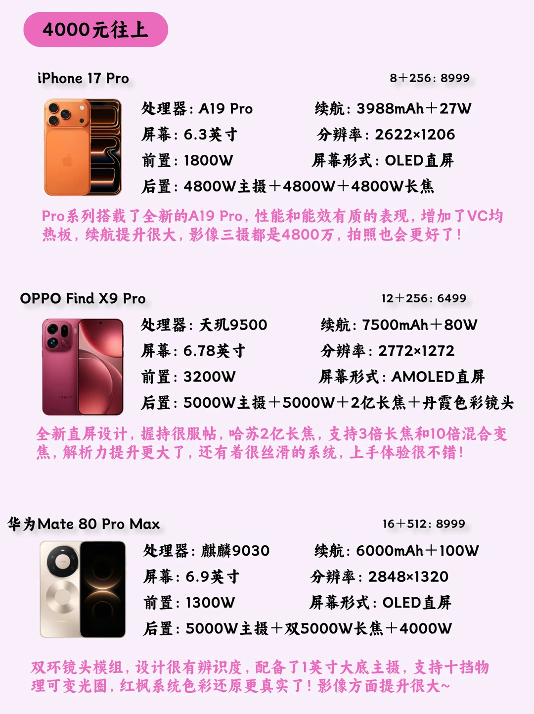iPhone 17 Pro、OPPO Find X9 Pro、华为Mate 80 Pro Max