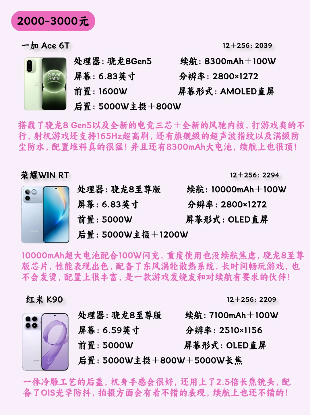 一加 Ace 6T、荣耀WIN RT、红米 K90