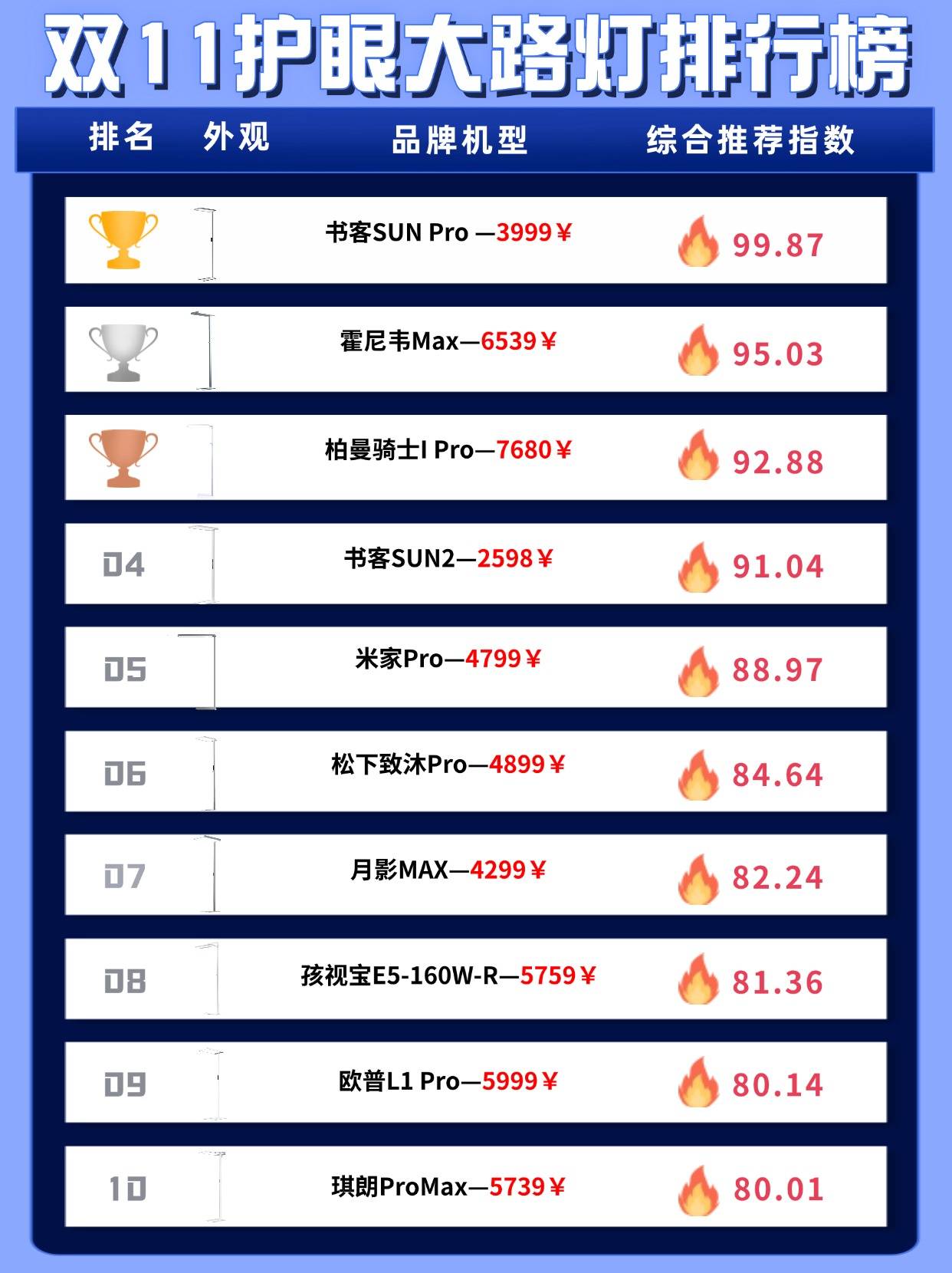 央视公布护眼大路灯排名第五名:书客护眼大路灯SUN Pro小太阳