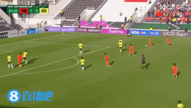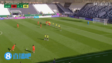 上半场补时2分钟,U23国足1-0澳大利亚U23。