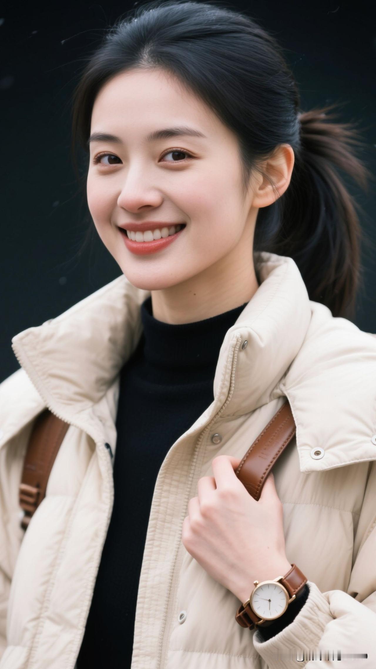 冬夜为笺,米白是晕开的奶霜,黑衫是凝住的星,腕表曳着光,一笑便盛了满室浪漫。雪夜梦幻感 米白气质上衣 雪夜温柔 米色调穿搭 米白穿搭 温柔米白色系 米白棕穿搭