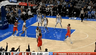 以赛亚-乔45度三分抬手空心入网,雷霆第三节打出15-0高潮