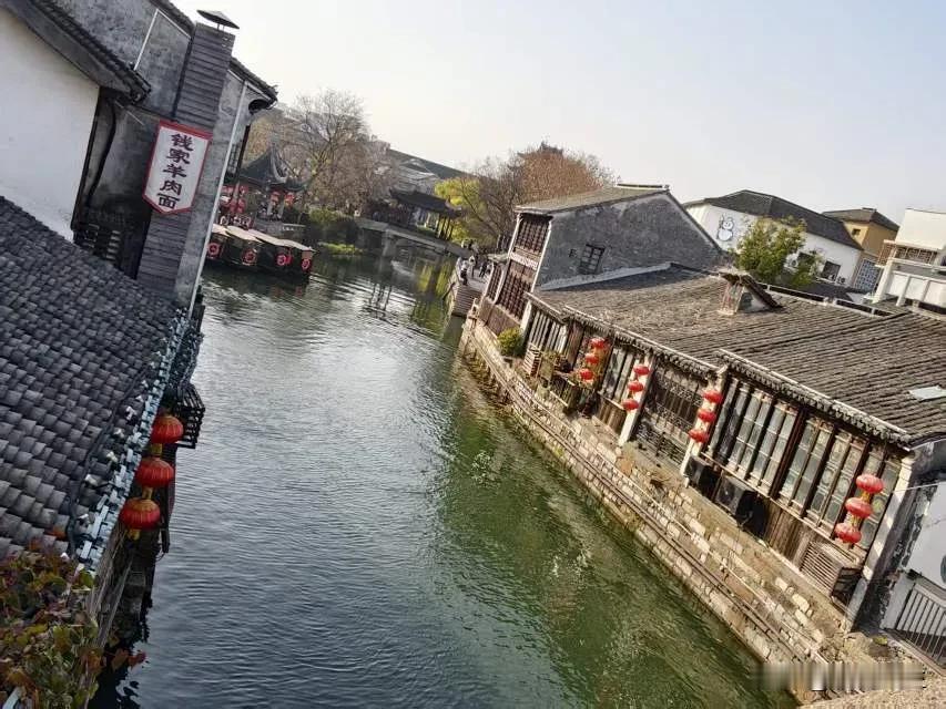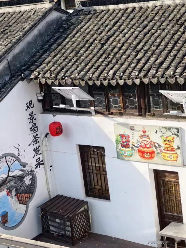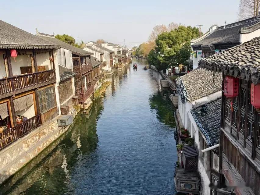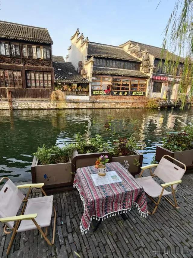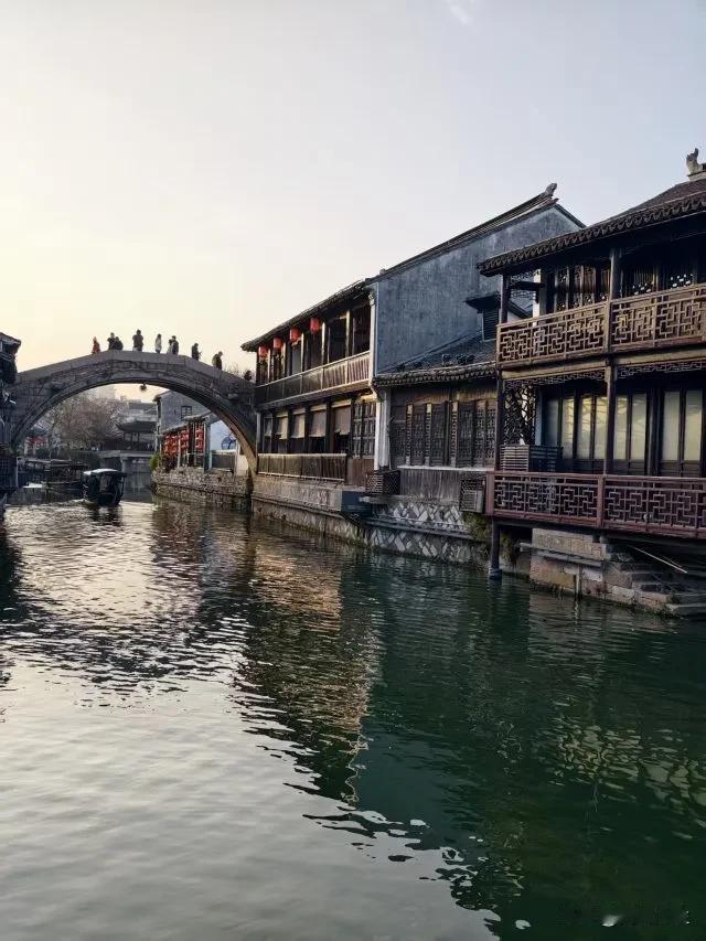在古镇的石桥上,优雅地坐着,享受宁静的时光。