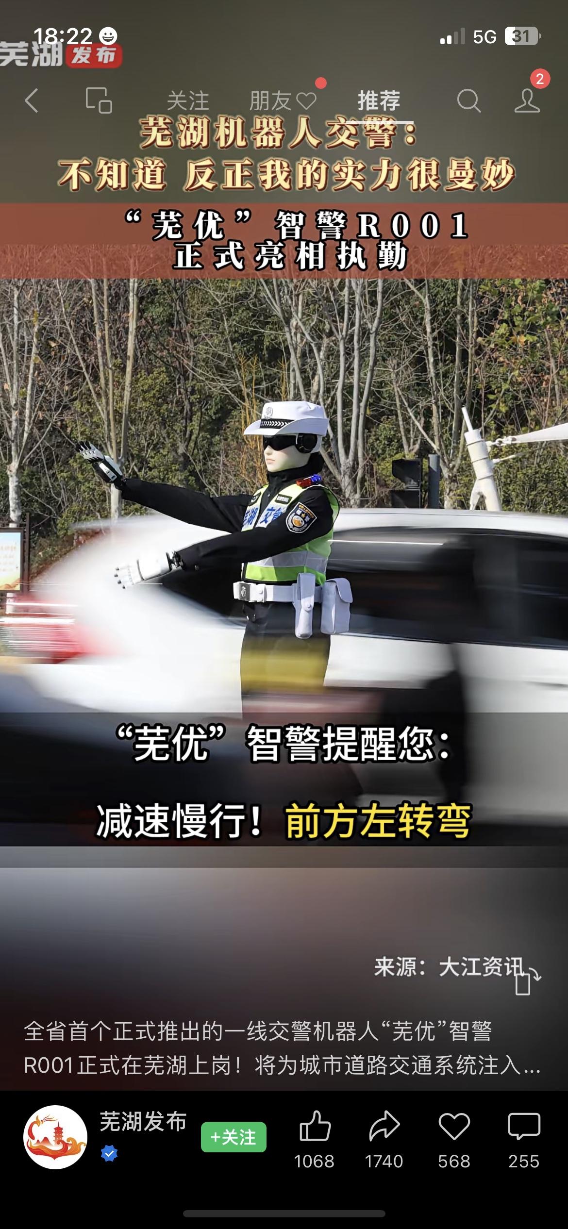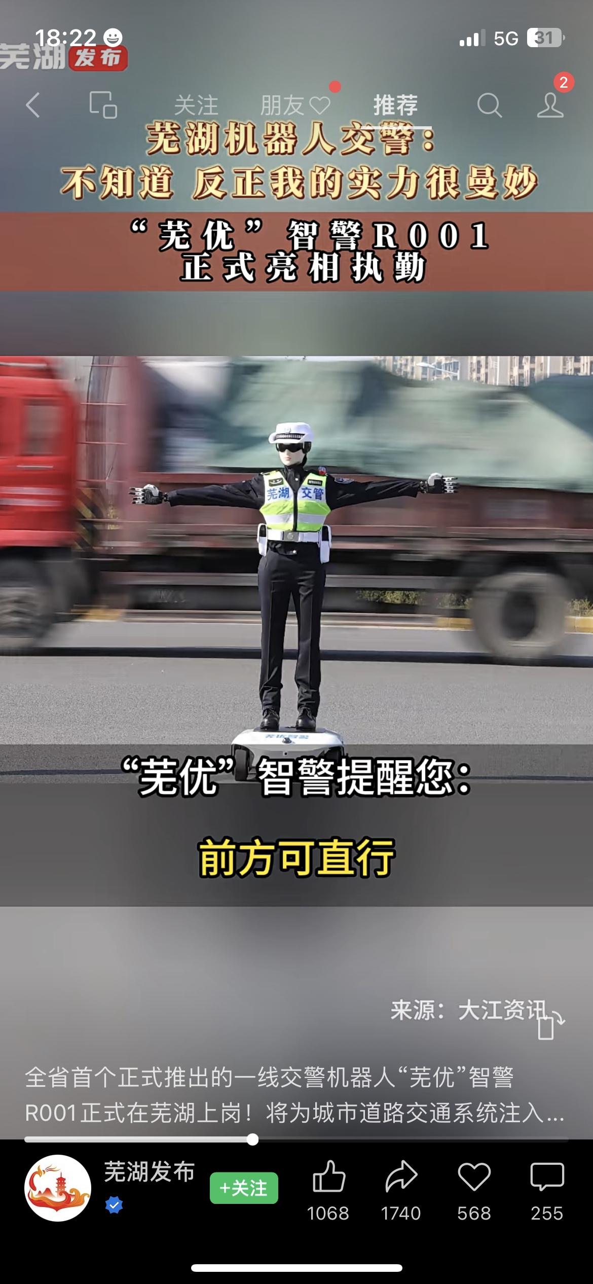芜湖街头惊现机器人交警!太绝了! “芜优”智警R001不光会标准指挥交通,还能语音提醒路况,再也不怕看不清交警手势了。科技给咱老百姓出行添便利,这波必须点赞! 你觉得机器人交警啥时候能普及到你所在的城市?芜湖机器人交警 民生科技交警数字机器人