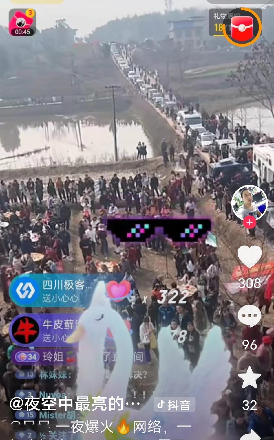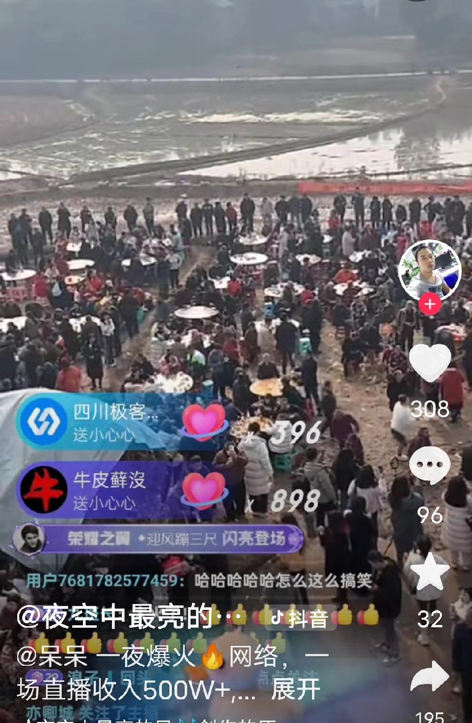 这是闯了多大的祸呀!收不了场了。 重庆合川的农村女孩呆呆,因为11号家里要杀年猪,担心年迈的父亲按不住猪,就在网上喊人去帮忙按猪,说杀好了猪请大家吃刨猪汤。 小姑娘心里也没点数,看到有人答应来帮忙,开心的说,就想我家门停满车,最好是比结婚场面还多的车,让我在村里也扬眉吐气一回。 结果10号夜里就来人了,到了11号,上百辆车从呆呆家门口排出去一公里,几千号人拥过来,呆呆吓的赶紧去派出所备案,那场面把警察都看呆了。杀两头猪肯定是不够吃了,当地文旅赶紧带着猪过来救场,两头最后变成五头猪,源源不断的流水席忙的呆呆爹妈深夜都休息不了,呆呆心疼地哭了。 呆呆说12号大家不要来了,没猪杀了,结果12号有人带着猪去了。 都说文旅干一年干不过两头猪,这猪,死的风风光光的,也算死得其所。