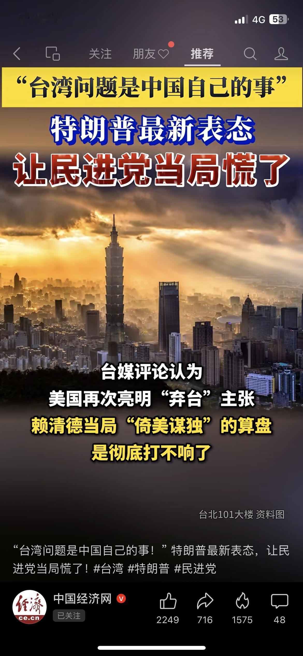 特朗普一句“台湾问题是中国自己的事”,民进党彻底慌了! 赖清德想“倚美谋独”的算盘彻底落空,岛内民众也看清:台海安全从来都不靠外部势力。国家主权完整,从来都是我们自己说了算。 你觉得这会影响台海局势吗?台湾问题