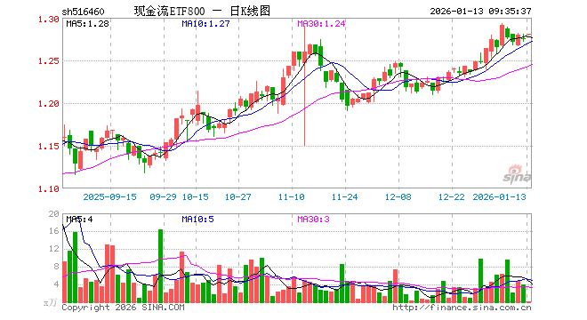 现金流ETF800(516460)业绩比较基准为中证800自由现金流指数收益率,管理人为鹏华基金管理有限公司,基金经理为寇斌权,成立(2025-04-17)以来回报为28.06%,近一个月回报为4.39%。