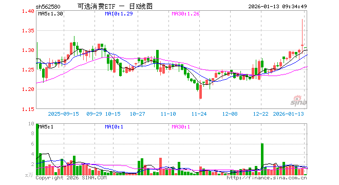 1月13日,可选消费ETF(562580)开盘跌0.46%,报1.306元。可选消费ETF(562580)重仓股方面,美的集团开盘跌0.92%,比亚迪涨1.57%,格力电器涨0.17%,赛力斯涨0.77%,福耀玻璃涨0.00%,三花智控跌0.54%,海尔智家涨0.23%,上汽集团涨1.10%,拓普集团跌0.01%,中国中免涨0.00%。