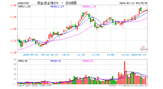 现金流全指ETF(563780)业绩比较基准为中证全指自由现金流指数收益率,管理人为方正富邦基金管理有限公司,基金经理为于润泽,成立(2025-04-30)以来回报为27.91%,近一个月回报为4.51%。