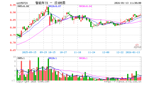 1月13日,截止午间收盘,智能车ETF泰康(159720)涨0.57%,报0.885元,成交额127.74万元。智能车ETF泰康(159720)重仓股方面,宁德时代截止午盘涨0.24%,比亚迪涨0.86%,立讯精密跌0.63%,汇川技术跌2.12%,亿纬锂能跌0.53%,豪威集团跌2.73%,三花智控涨2.23%,长城汽车跌0.41%,拓普集团涨1.08%,科大讯飞涨4.43%。