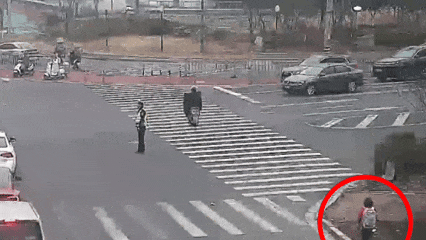 突然,一名背着书包的小女孩