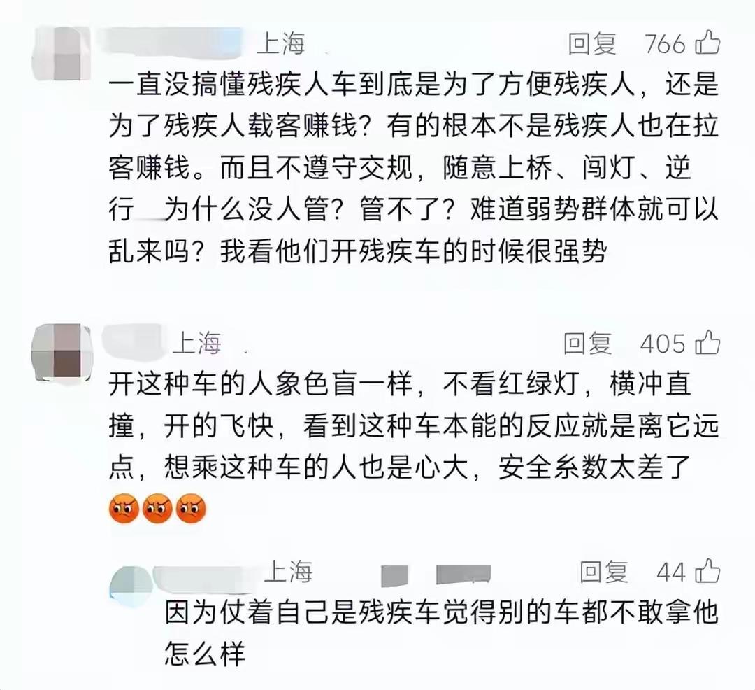 上海街头“铁拳”风暴:40天狂查7000起!6人拘留背后,残疾车乱象为何屡禁不止?真相令人深思! 清晨的地铁口,一排排残疾车挤占着人行道,引擎轰鸣声中,它们闯红灯、逆行、肆意载客,仿佛马路是自家客厅。这不是电影场景,而是上海多个轨交站口的日常。直到警方挥出重拳,数据令人瞠目:短短40天,查处违法超7000起,6人被拘!这场整治风暴,揭开了城市治理中一道隐秘的伤疤。 当一辆残疾车在普陀区闯红灯撞飞行人,当松江的十字路口传来刺耳的碰撞声,鲜血与眼泪背后,是无数个家庭破碎的风险。这些车辆本是为残疾人出行提供便利的工具,如今却成了横冲直撞的“马路杀手”。数据显示,违法载人高达2000余起,闯红灯近千起,非法改装同样猖獗。数字冰冷,但每一起违法都可能酿成无法挽回的悲剧。 网友的愤怒早已沸腾。“好多腿脚好好的都在开残疾车!”“车站门口排成长队,堵路又危险!”评论区里,市民的吐槽如潮水般涌来。更有人犀利指出:部分驾驶人“身残志不残”,下车打架时身手矫健,让人哭笑不得。当同情心被滥用,当特权思维凌驾于规则之上,公共安全便成了牺牲品。 深入剖析,乱象根源远不止于交通违法。残疾车非法营运已成灰色产业链——有残疾人出租证件车辆,每月坐收租金;健全人借此载客牟利,穿梭于地铁与小区之间。需求催生供给:最后一公里出行难,共享单车不足时,这些“黑三轮”便成了廉价选择。甚至有人直言:“十分钟到家,比打车便宜多了。”便利与风险之间,许多人选择了侥幸。 警方的整治可谓雷厉风行。闵行查获改装车辆,宝山罚款闯红灯司机,市场监管部门溯源改装店铺……一套组合拳下来,涉残疾车事故伤亡人数显著下降。但执法的“刚性”背后,是否缺乏“柔性”疏导?残疾人群体的出行需求真实存在,一味堵截能否根治?当法律与人情碰撞,城市治理的智慧面临考验。 从人性视角看,残疾车乱象是一面镜子。照见了部分人对规则的漠视,也映出了弱势群体生存的艰辛。真正的残疾人需要代步工具,但少数人利用政策漏洞牟利;市民图方便乘坐“黑三轮”,却忽视了潜在危险。当个体利益与公共安全冲突,我们是否习惯了妥协?这场整治,恰恰唤醒了我们对秩序与生命的敬畏。 上海的行动并非孤例。全国多城市已开始严查三轮车、残疾车违法。但治理之道,在于疏堵结合。一方面要严厉打击非法营运、改装、违法驾驶,另一方面也需完善公共交通微循环,解决短途出行痛点。更关键的是,加强对残疾人车辆的规范管理,杜绝证件车辆违规流转。唯有源头治理,才能让道路重归有序。 市民的呼声值得倾听。“建议改为电动车,减少污染!”“从源头查谁批准了非下肢残疾人购车!”这些评论虽带情绪,却指向了深层次问题。政策执行是否打了折扣?日常监管是否存在盲区?城市精细化治理,正需要从每一处细节入手,让公平正义贯穿始终。 这场铁拳风暴,终会过去。但它留下的思考,应长存于城市管理者的心中。一座文明的城市,既要有雷霆万钧的执法力度,也要有润物无声的人文关怀。残疾车不该是法外之物,每一位道路参与者都应明白:规则是安全的底线,敬畏是生命的保障。当我们每个人都能恪守本分,这座城市才会真正成为安居乐业的家园。 (来源:综合自新民晚报、网友评论及上海警方公开数据) 上海残疾车整治 交通违法治理