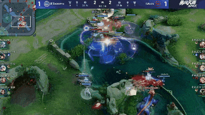 6分06秒,京东再次入侵蓝区,eStar众人回防,双方一换一