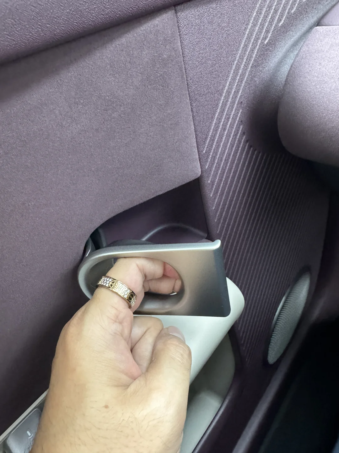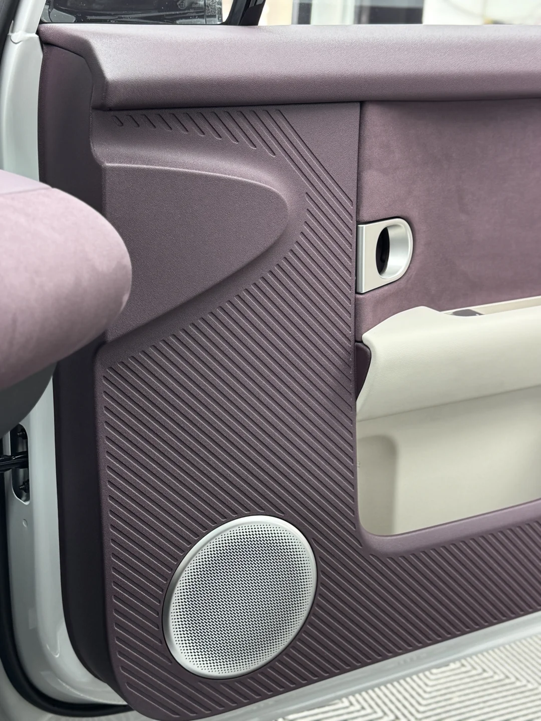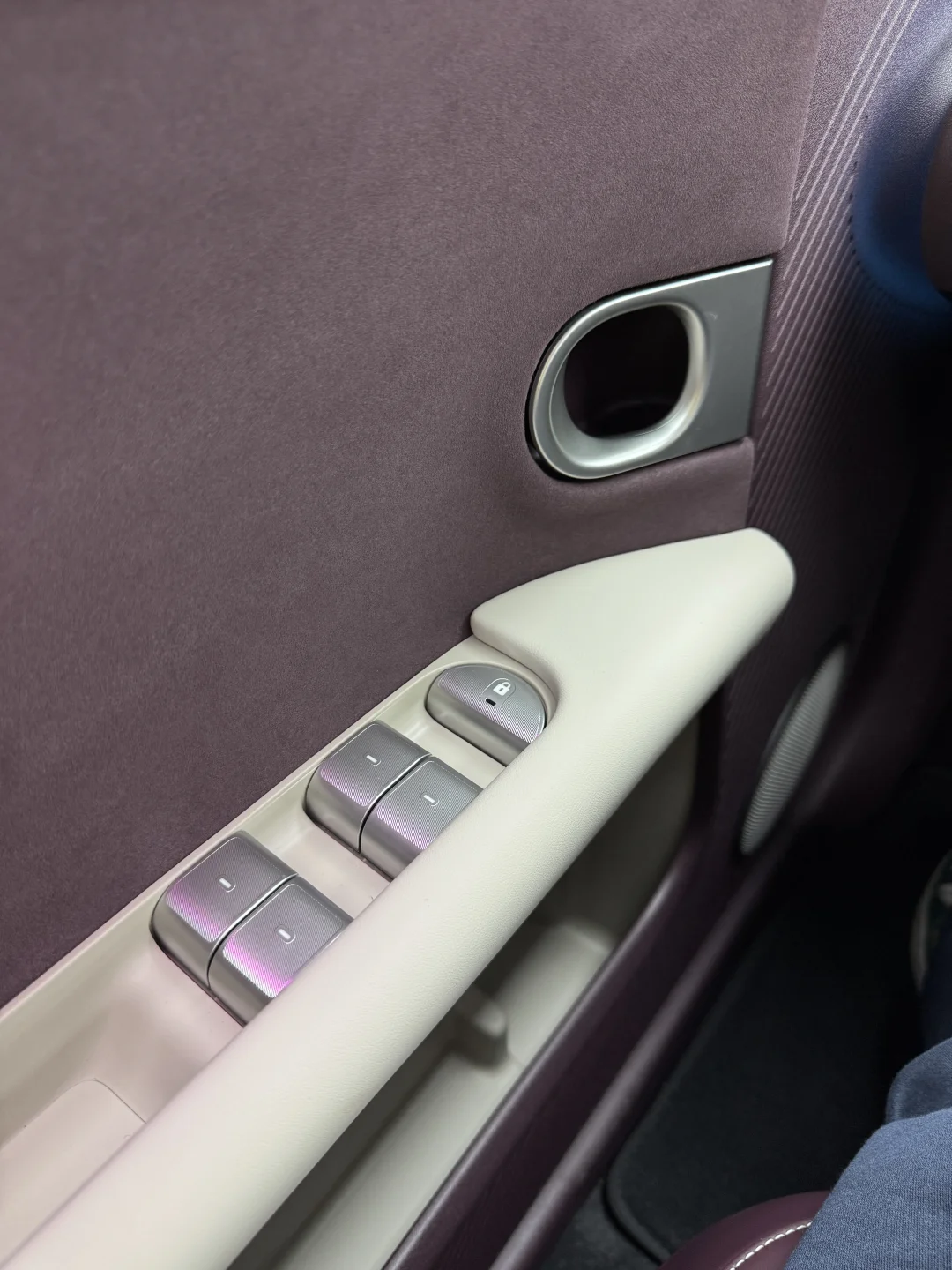 车内很多元素都设计的比较卡通,很卡哇伊。很适合女性的车友,这个门把手可爱的我都喜欢。还有这些配色,很难不爱。