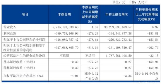 Q3营收97亿净亏超3亿