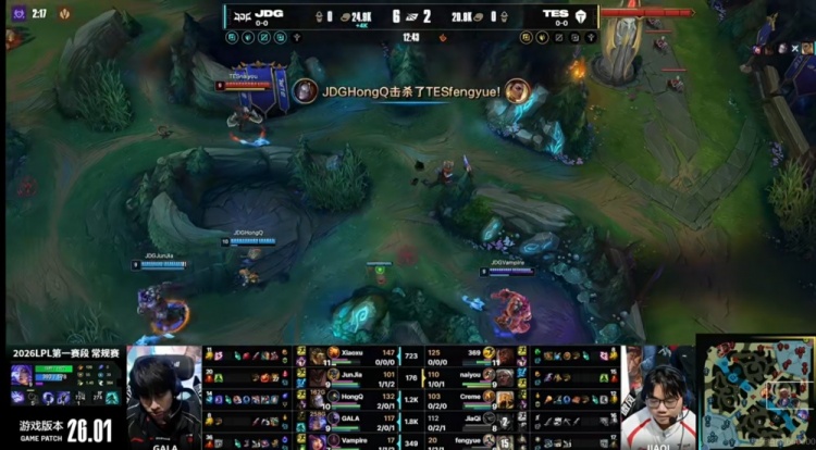 [15:55]JDG三人包上强杀369奎桑提,回头TES反开但是Junjia墨菲特大招好了啊!JDG抱团再留Fengyue芮尔,再打一波0换2之后已经来到7K经济差了!
