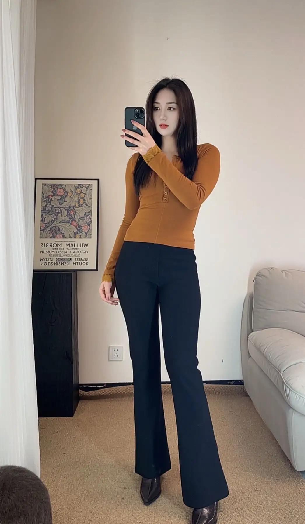 优雅穿搭指南:棕色上衣+黑色阔腿裤,简约而不失时尚感。