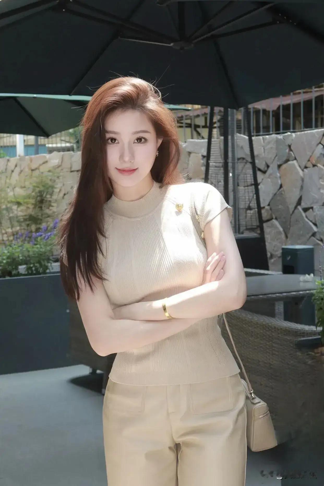 优雅气质穿搭,米色高领毛衣搭配同色系长裤,简约而不失时尚感。