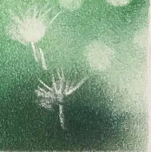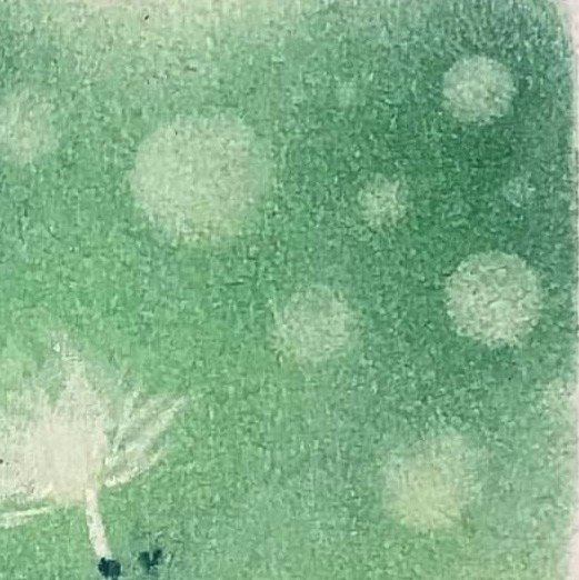 養娃日記15蒲公英,漸層的綠色點綴白色蒲公英,很夢幻的感覺❤️
