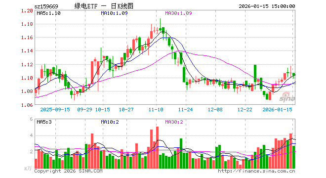 1月15日,绿电ETF(159669)跌0.36%,成交额296.76万元。当日份额增加150.00万份,最新份额为9725.48万份,近20个交易日份额增加600.00万份。最新资产净值计算值为1.07亿元。