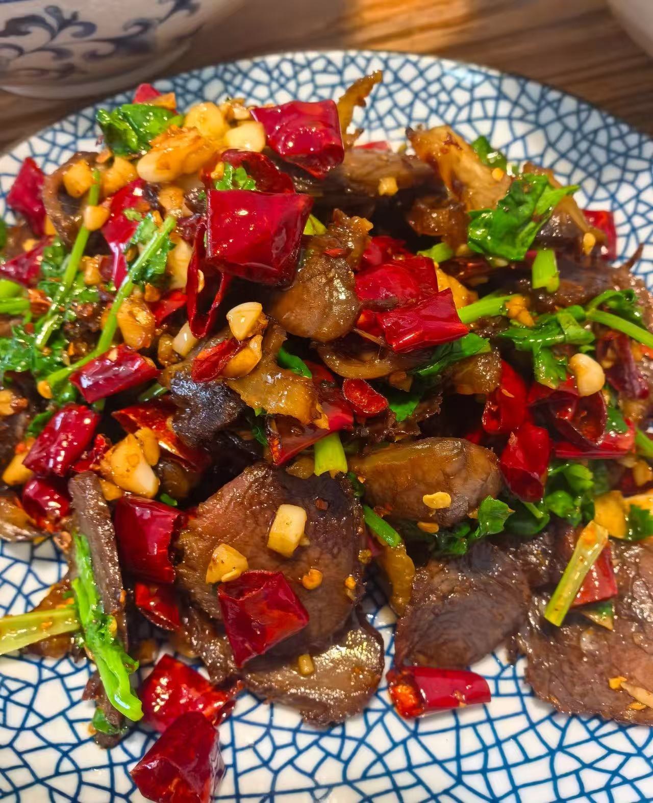 3️⃣.香菜牛肉,满满锅气的小炒神菜,腊牛肉口感扎实,香嫩入味。