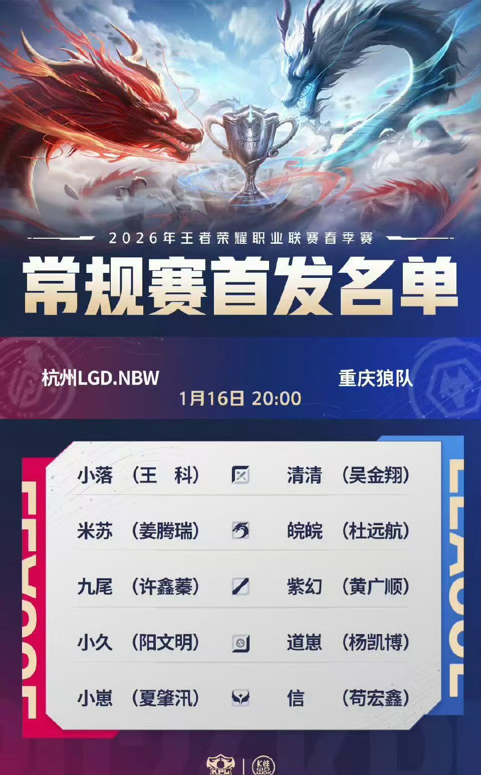 LGD春季赛首发阵容LGDNBW春季赛首发阵容 春季赛第一场 接赢啊!