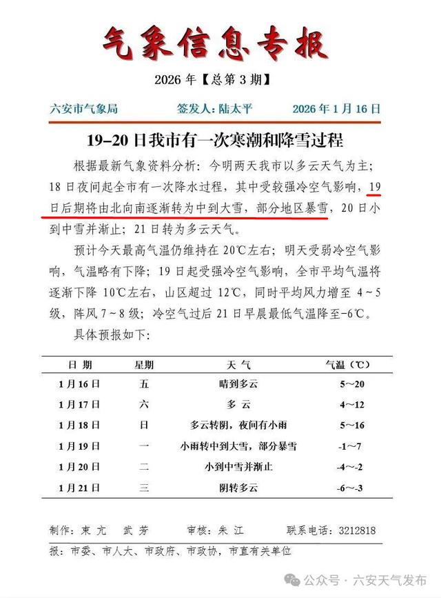 部分地区暴雪!六安发布气象灾害防御提示