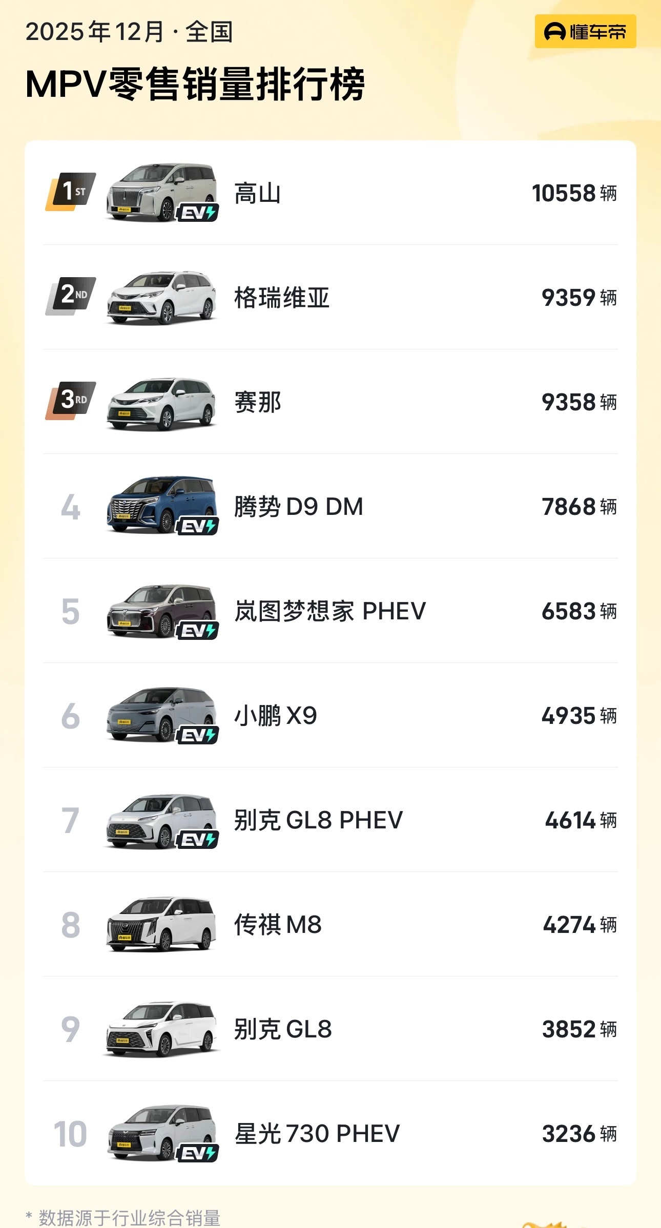 现在国内MPV市场,魏派高山绝对不容小视,单从2025年12月的销量来看,魏派高山稳居榜首。 如果只觉得魏派高山只有销量好,那就大错特错了,它不管是在内饰、配置、智驾还是安全方面,都能稳稳做到同级领先,真的可以说是全能MPV。 重点是今年春晚选择了魏派高山作为指定车型,其背后的原因是魏派高山的硬核实力;而作为春晚的指定车辆,也印证了车辆的静谧性、舒适性与可靠性是经得起国家顶级接待任务检验的。