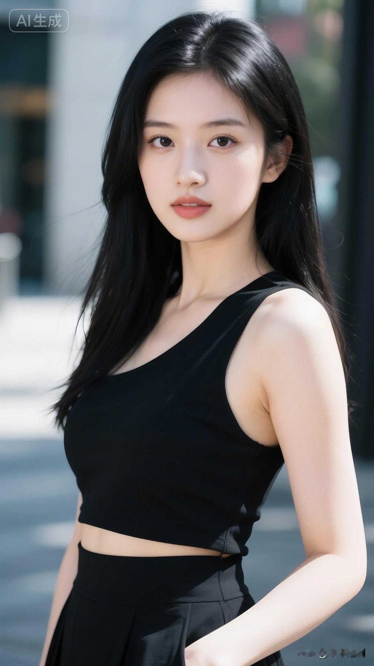 斜肩黑衫搭配高腰裙装,利落剪裁衬出清冷气质,在街头暖阳里,把酷飒与温柔都揉进了穿