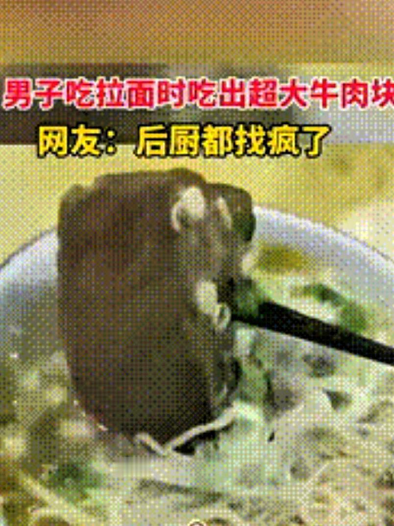 运气太好了!近日山东一男子正在饭店吃拉面,本来打算用筷子搅拌搅拌汤,让面吃起来更加入味。 可搅着搅着就发现不对劲了,感觉自己碗里有块硬物。 他一开始以为是一块异物,刚想找老板理论,结果筷子一撅,竟然撅出一块像鸡蛋大小的牛肉块! 吃过拉面的朋友应该知道,平时我们吃拉面,里面的牛肉也就有可怜的几小片,这突然多出这么一大块,男子突然高兴坏了,心想今天运气实在太好了,今天后厨师傅对自己是真大方? 但他突然又一想,忽然明白怎么回事了,可能是后厨太忙,不小心将这块牛肉弄点自己碗里了。那老板不是连本钱都不够了。 想到这,男子赶紧端着面碗跟老板说了这事?还掏出手机准备补差价。 老板知道此事后,尴尬的笑了笑,连忙摆手,说不用,不用! 男子听老板拒绝,也没客气,一口牛肉一口面的吃完饭,就离开了! 回到家男子就把这事发到了网上。 没一会就引来了许多网友的热议。 有网友说,这块牛肉,够老板做几十碗牛肉面了! 也有网友吐槽,他们的存货都被你吃了,以后还怎么给客人做牛肉面? 本来就是老板的大意,男子还主动要补钱。可是面已经动过了,老板肯定也卖不出去,索性也只能便宜了这个男子了!
