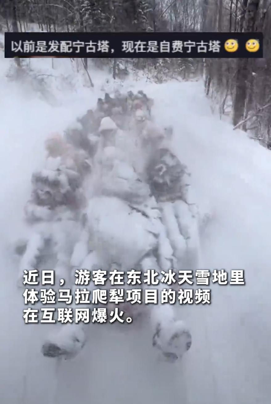 笑死了!一位南方女生去东北旅游,冰天雪地在景区花钱体验了一把马拉爬犁,结果视频发上网,评论区却翻了车。不少人一看就乐了:这不活脱脱是电视剧里流放宁古塔的场面吗?,网友:东北人根本不会玩! 从女子拍摄的视频来看,当时体验的人不少,冰天雪地里,爬犁在雪道上跑得飞快,风卷着雪沫子劈头盖脸地往人身上扑。才几分钟功夫,坐在上头的人从头到脚就盖了一层白,远远看去,像个移动的雪堆。姑娘自己也哭笑不得,说体验完愣是半天没说出话,冻透了 东北本地的网友看了更逗,纷纷留言:这项目咱本地人可真不玩,小时候上学路上冻得够呛,谁还专门花钱去找这罪受?也就是南方朋友新鲜,来体验一把北方的“冷酷” 其实说起来,马拉爬犁在早年交通不便的东北农村,还真是重要的出行工具。只是如今生活好了,雪地有清雪车,出门有汽车,这种老物件自然慢慢退出了日常,转而成了旅游体验里的一个符号。南方游客没见过,觉得新奇,想尝尝鲜,这太正常了。就像北方人去江南,也可能想坐坐乌篷船,是一个道理 旅游的本质,不就是去别人待腻的地方,体验些自己没见过的东西吗?南方朋友没见过这么大的雪,没尝过这种“寒风扑面”的滋味,花钱买一段特别的记忆,哪怕冻得哆嗦,回头想想也挺有乐子 而本地人觉得这是“遭罪”,也不过是因为这曾是生活里习以为常甚至有些辛苦的一部分。视角不同,感受自然天差地别 所以,真不必较真说哪个项目“正宗”或者“本地人才不玩”。旅游景点的体验项目,本来就是在安全的前提下,让外地人管中窥豹,感受一点不一样的风土