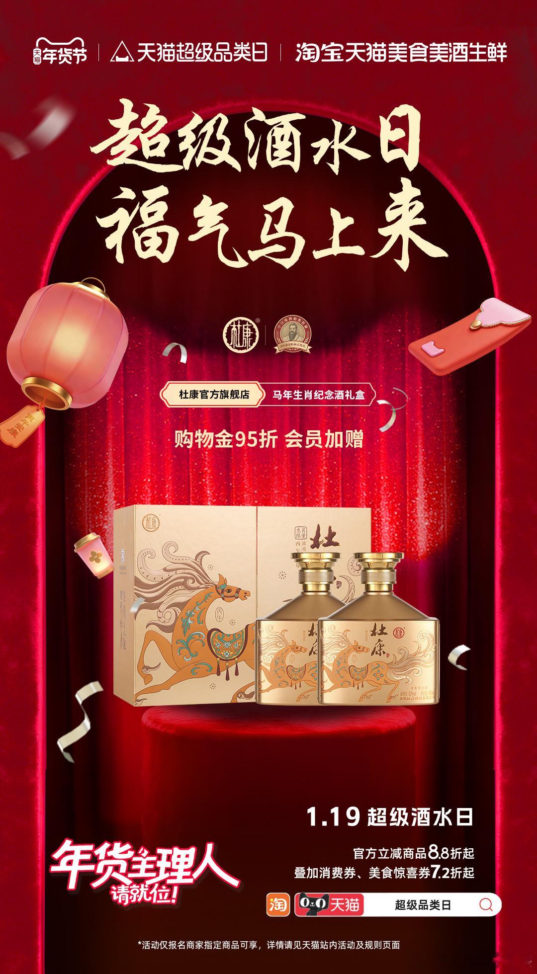 礼轻情意重?不,这次礼重情更浓!在超级酒水日入手的杜康马到成功礼盒,送谁都不踩雷~千年酿艺+古法传承,融五谷之精华,酒质绝绝子~骏马烫印寓意马到成功,“以马为梦,以酒为敬”,马年自带吉庆氛围,送亲戚、送长辈都合适~更有独立编号收藏卡片彰显品位,酒质绵柔醇厚,回甘十足,适配各种场合,年货清单闭眼冲,送礼超有面!1月19日 ,上淘宝APP搜【超级品类日】 进入超级酒水日专场,酒水礼盒7折起~ 天猫美食年货主理人寻味中国年年货主理人请就位天猫超级品类日