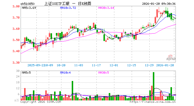 1月20日,上证50ETF工银(510850)开盘涨0.27%,报3.686元。上证50ETF工银(510850)重仓股方面,贵州茅台开盘涨0.25%,中国平安涨0.08%,招商银行涨0.05%,紫金矿业涨0.00%,长江电力涨0.00%,兴业银行涨0.00%,恒瑞医药涨0.02%,中信证券涨0.07%,寒武纪跌0.19%,药明康德跌0.50%。