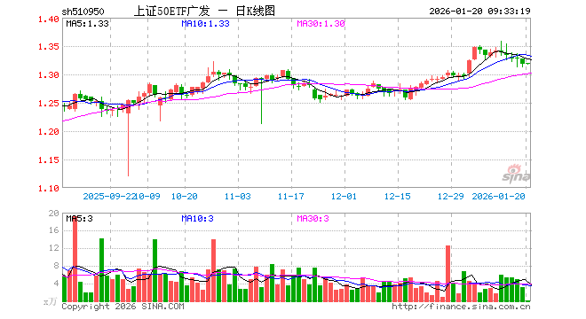 1月20日,上证50ETF广发(510950)开盘涨0.08%,报1.319元。上证50ETF广发(510950)重仓股方面,贵州茅台开盘涨0.25%,中国平安涨0.08%,招商银行涨0.05%,紫金矿业涨0.00%,长江电力涨0.00%,兴业银行涨0.00%,恒瑞医药涨0.02%,中信证券涨0.07%,寒武纪跌0.19%,中芯国际跌0.23%。