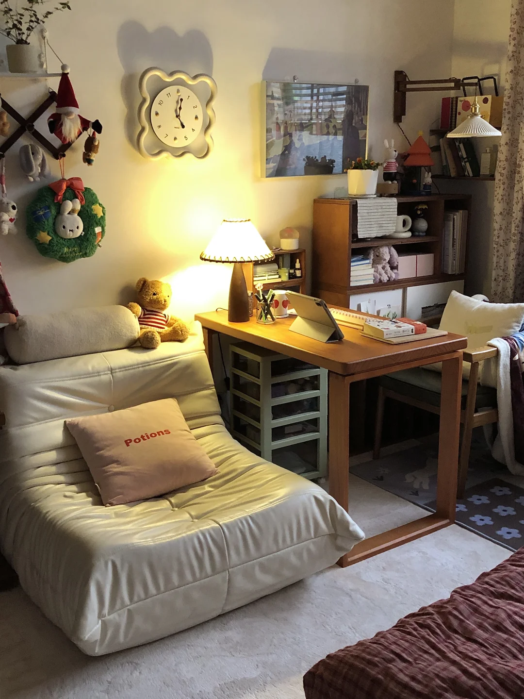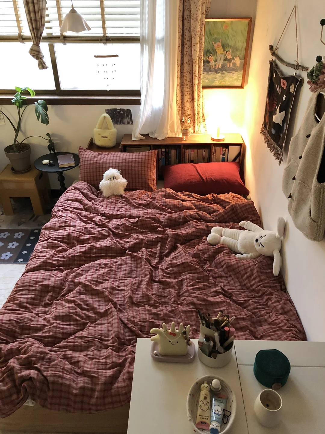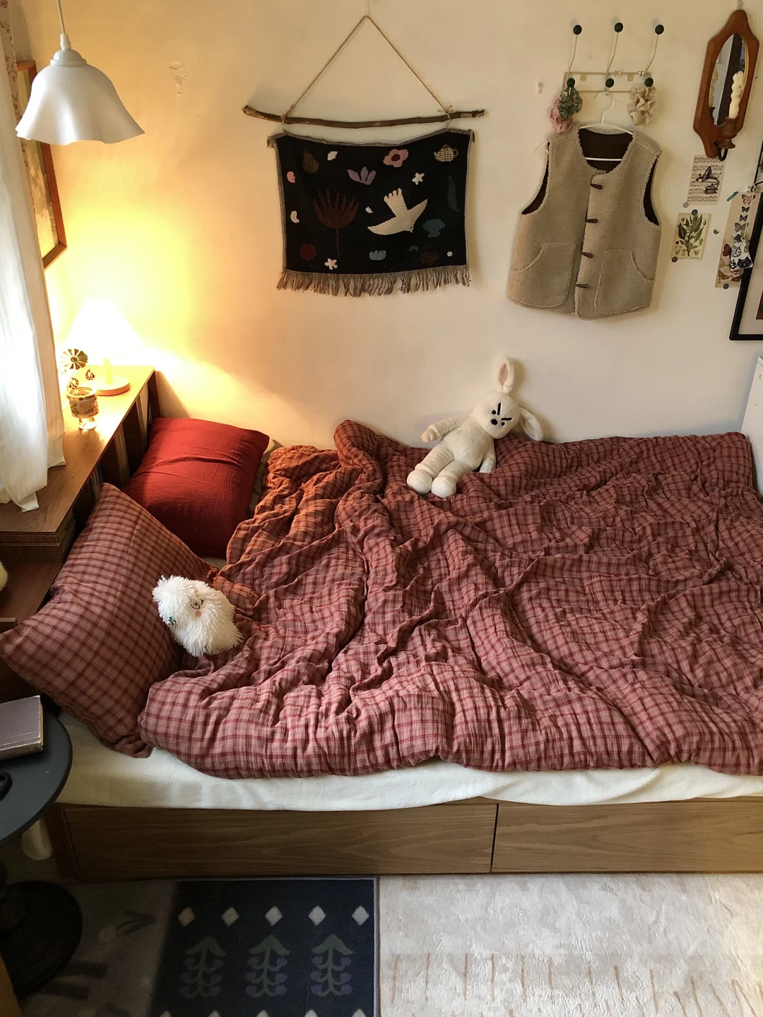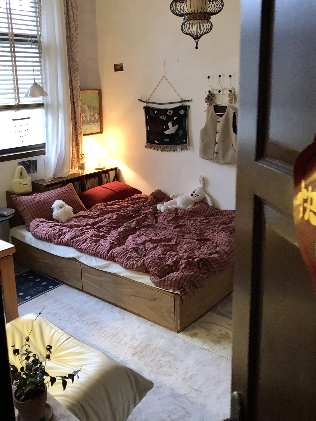 改造这间老破小已经三年啦 除了粉刷墙壁其他都靠软装 比较喜欢复古风格家具主要是棕色系 最近布局有一点变化~平面图在p3 这个布局会显得房间不那么拥挤 一米五床,书桌,书架,懒人沙发 动线也比较流畅~供参考啦