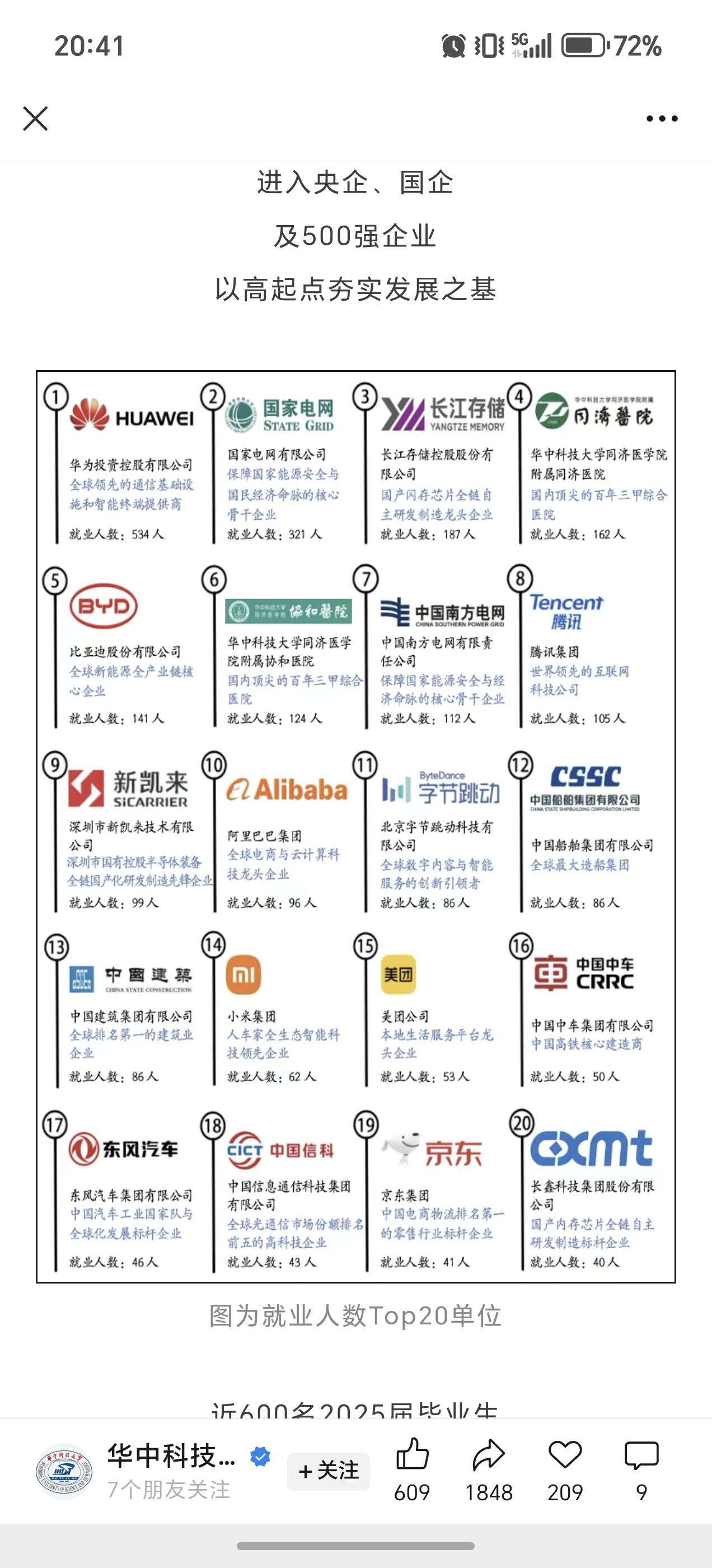 西电,西交大,华中科大,北邮发布了就业质量报告。 西电发布就业top30强单位,就业最多的是华为。 西交大就业最多的单位是国家电网。 华中科大发布就业top20强单位,就业最多的是华为。 北邮就业最多的单位是中国移动。你觉得怎么样? 西安生活 西安身边事 西安 西安本地 教育 大学