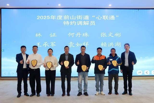 同时,为进一步拓宽调解维度、提升服务精度,前山街道新聘任了一批特约调解员,包括熟悉跨境事务的调解员,擅长跨领域沟通的专家、商会代表,以及物流、零售等新业态从业者。他们将发挥各自在特定领域、特定群体中的专业优势与影响力,为“心联通”体系注入新的活力。