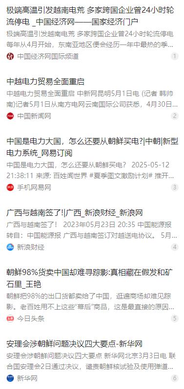 为何中国宁愿把电力输向越南,让越南夜晚灯火辉煌,却对朝鲜几乎绝不供电?要想明白这事,首先得看越南这边,完全是“双向奔赴”。   麻烦看官老爷们右上角点击一下“关注”,方便您进行讨论和分享,感谢您的支持!   2004 年 9 月 25 日,中越第一条跨境输电线路正式投运,这条 110 千伏线路从云南河口直通越南老街,敲开了两国电力合作的大门。此后十多年里,双方陆续搭建起 5 个通道 7 回线路的输电网络,把云南、广西的清洁能源源源不断送往越南北部。   中越电力合作能持续深化,核心是 “你需我有” 的精准匹配。越南北部工业快速发展,制造业工厂遍地开花,用电需求连年攀升,可当地电力供应严重依赖水电,稳定性极差。2022 到 2023 年,越南北部遭遇罕见干旱,水电站发电量大幅下滑,电力缺口直接影响工厂生产和居民生活。   此时中国刚好能补上缺口。云南、广西水资源丰富,水电装机容量大,每到汛期总会产生不少富余电力,这些电力如果就地消纳不了,就会造成资源浪费。借着越南的用电需求,中国的富余水电有了出路,既创造了经济效益,又践行了绿色发展理念。   2023 年,广西与越南签署购售电协议,重启中断 7 年的送电合作,单条线路月供电量就达到 3000 万千瓦时,供电范围覆盖越南芒街市一带。截至目前,中越跨境售电累计送电量已近 400 亿千瓦时,其中九成以上是清洁水电,环保又高效。   更关键的是,双方合作完全遵循市场化规则。从购售电协议的签订到电费结算,每一步都有明确规范,南方电网与越南电力集团还签署了长期战略合作备忘录,让合作有长期保障。对中国来说,向越南输电的成本甚至低于国内远距离跨省输电,经济收益十分可观。   反观中朝之间,并没有这样的规模化供电合作,核心原因并非主观意愿,而是多重客观条件的限制。两国的能源往来,主要依靠鸭绿江上的四座共建水电站,这种合作模式早在 1955 年就已形成,电站所有权由两国平分,电力双方各取 50%。   和大家印象中不同,近年不是中国向朝鲜供电,反而出现了反向输出的情况。朝鲜从共建水电站获得的电力中,有一部分用不完,就会卖给中国东北电网,2023 年的出口量就达到 5.36 亿千瓦时,形成了独特的双向互补格局。   之所以无法开展规模化供电,首先是朝鲜的电力需求本身有限。朝鲜实行计划用电制度,工业规模和居民用电需求远不如越南,现有电力供应基本能满足国内刚需,没有大规模进口电力的必要。   电力标准不兼容是另一大硬伤。朝鲜内陆电网沿用苏联时期的 60Hz 标准,而中国和越南都采用 50Hz 标准,这种技术差异让跨境输电面临诸多障碍。朝鲜还坚持使用老旧的电力设备,担心电网数据安全,导致输电效率远低于中越联网水平。   联合国安理会对朝鲜的制裁更是关键制约因素。根据安理会决议,各国需对朝鲜相关贸易进行管控,电力作为敏感领域,规模化跨境交易不符合制裁要求。而电力出口是朝鲜极少数能合法获得外汇的渠道,2023 年电力出口收入约 1.57 亿元,对其经济有重要意义。   此外,中朝电力合作的定位也与中越不同。中越合作是纯粹的市场化贸易,而中朝之间更多是援建和项目共建性质,聚焦于边境水电站的共同运营维护,目的是保障边境地区的能源稳定供应,而非商业性的电力出口。   从实际效果来看,两种合作模式都实现了各自的价值。中越电力贸易让越南夜晚灯火通明、工厂机器不停转,也让中国的富余能源变现,推动了区域经济协同发展。中朝的水电共建则维系了两国传统友谊,朝鲜出口的电力还能填补中国东北电网的边际需求,在电力供应波动时起到应急补充作用。   说到底,国家间的电力合作,从来不是单纯的 “愿意与否”,而是要综合考虑需求匹配、技术兼容、政策环境等多重因素。中越合作是市场化条件下的双向奔赴,中朝合作则是基于特殊情况的互补共赢,两种模式没有优劣之分,都是符合各自国情的最佳选择。   未来随着能源技术的进步和区域合作的深化,中越电力贸易规模可能会继续扩大,甚至有望推进更高电压等级的联网工程。而中朝之间,大概率会继续维持现有的水电共建模式,在符合国际规则的前提下,保持适度的电力互补往来。