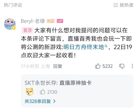 居然不是原神?BeryL入驻B站:直播首秀将试玩明日方舟终末地