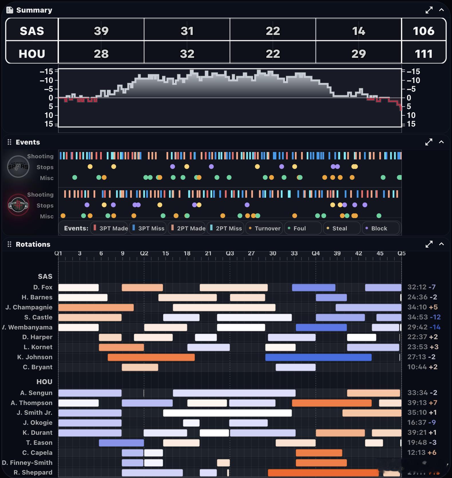 今天全场,马刺领先了将近90%的时间